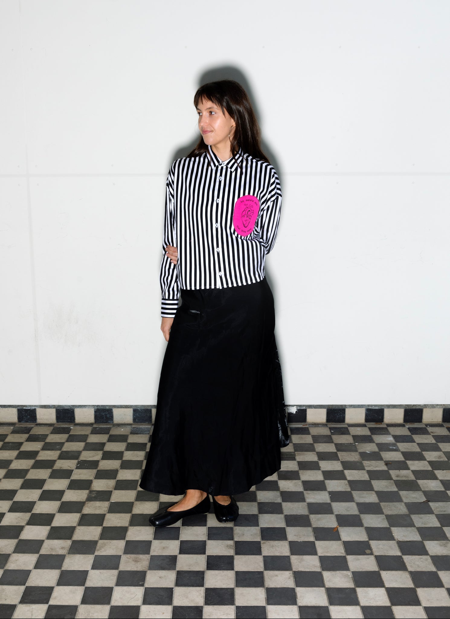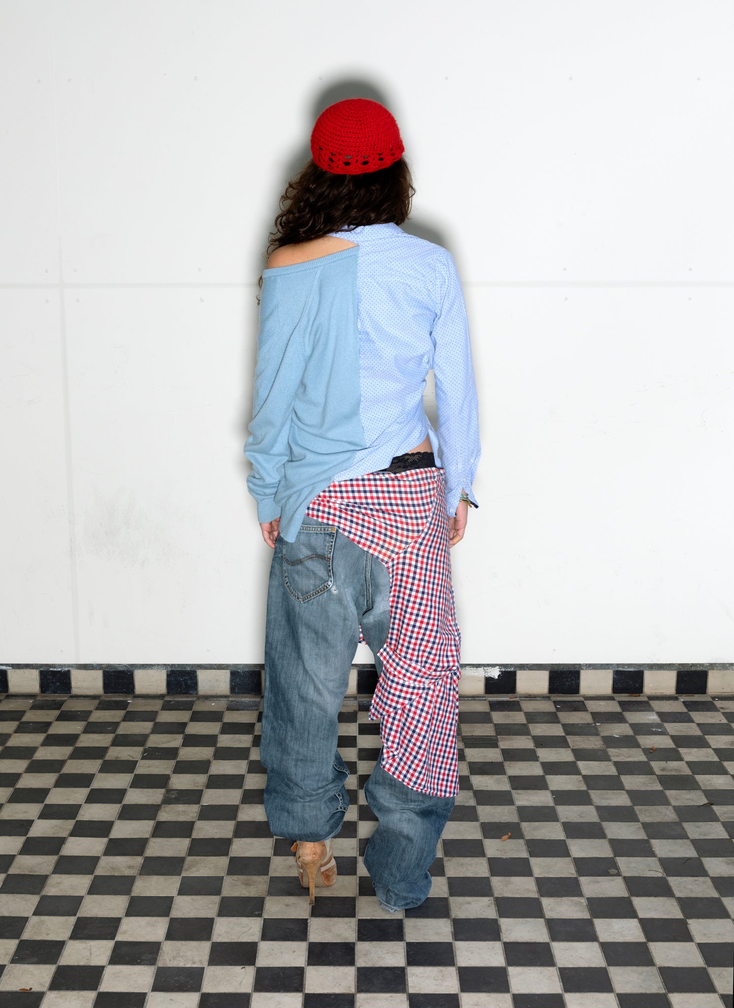 The upcycled collection is a bold celebration of creativity, collaboration, and circular fashion. Created by local designers and makers, this collection transforms non-swappable clothes - items too damaged, outdated, or unloved for The Swapshop - into one-of-a-kind garments with new value and new stories. Every look reflects the unique vision of its maker and the potential of upcycling to challenge the throwaway mindset. Scroll through to meet the creatives and explore their pieces. Find the upcycled collection in the separate section in our stores!